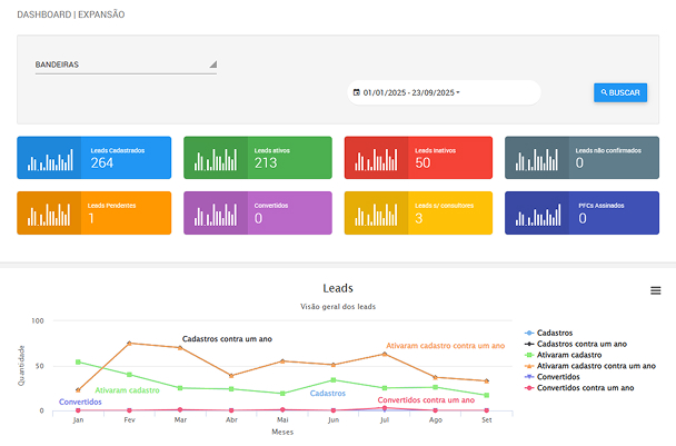 Descubra quais mídias convertem mais, dentro ou fora do prazo. Veja a taxa de conversão por consultor e por bandeira.
